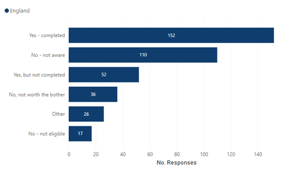In England, 152 of 390 had accessed and completed the animal health and welfare pathway to access funding towards BVD control. Fifty two had started but not completed the pathway and worryingly 110 respondents were not even aware that this funding existed. Thirty six felt it wasn’t worth the bother which leads to the question of whether they have discussed the procedure with their vet to gauge what is actually involved.